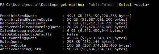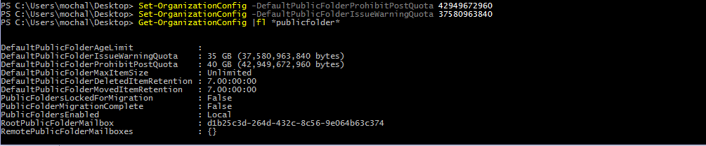 Office365: Change public folder default quota limit