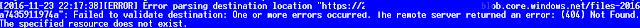 Failed to validate destination: One or more errors occurred. The remote server returned an error: (404) Not Found.